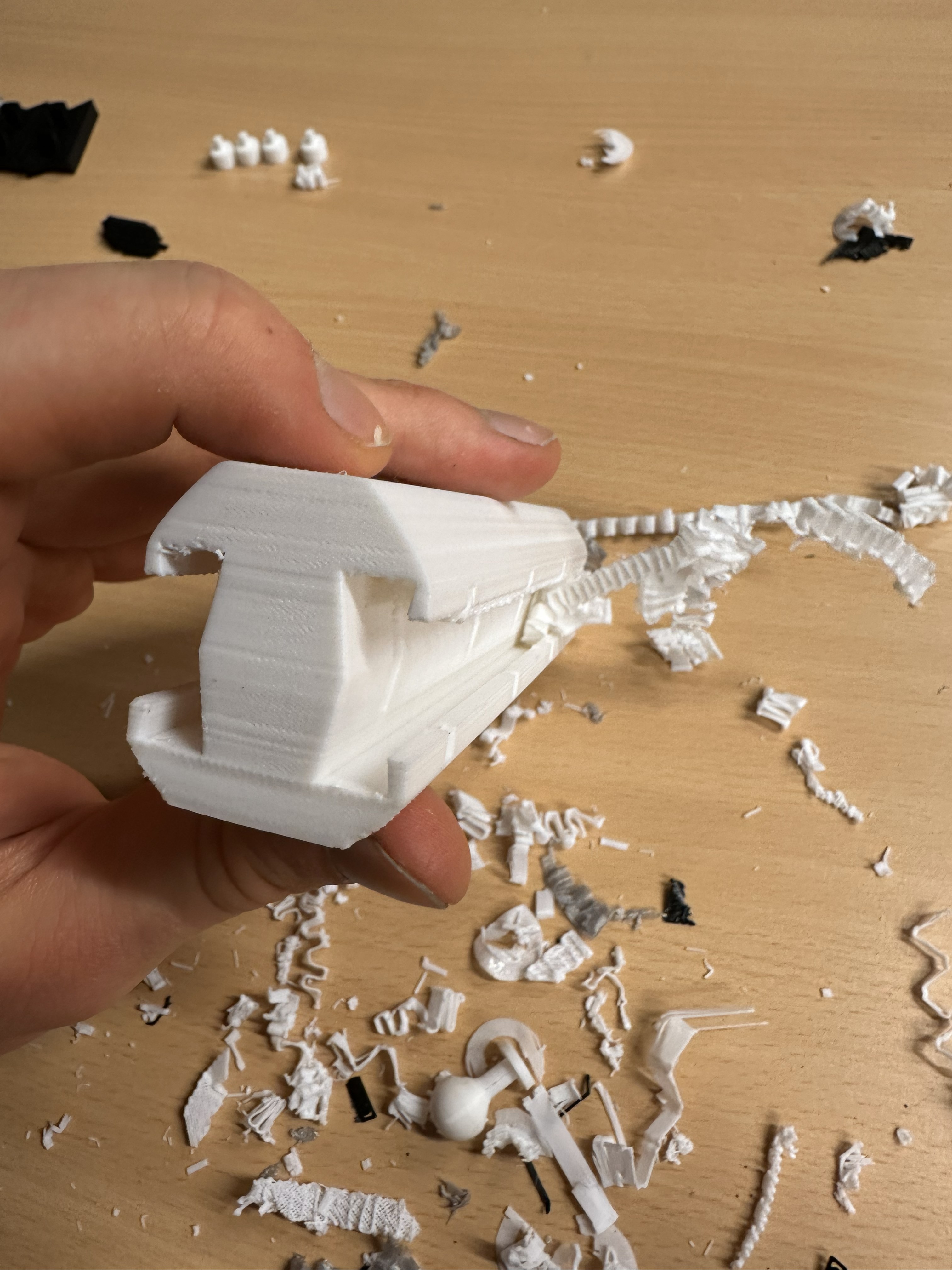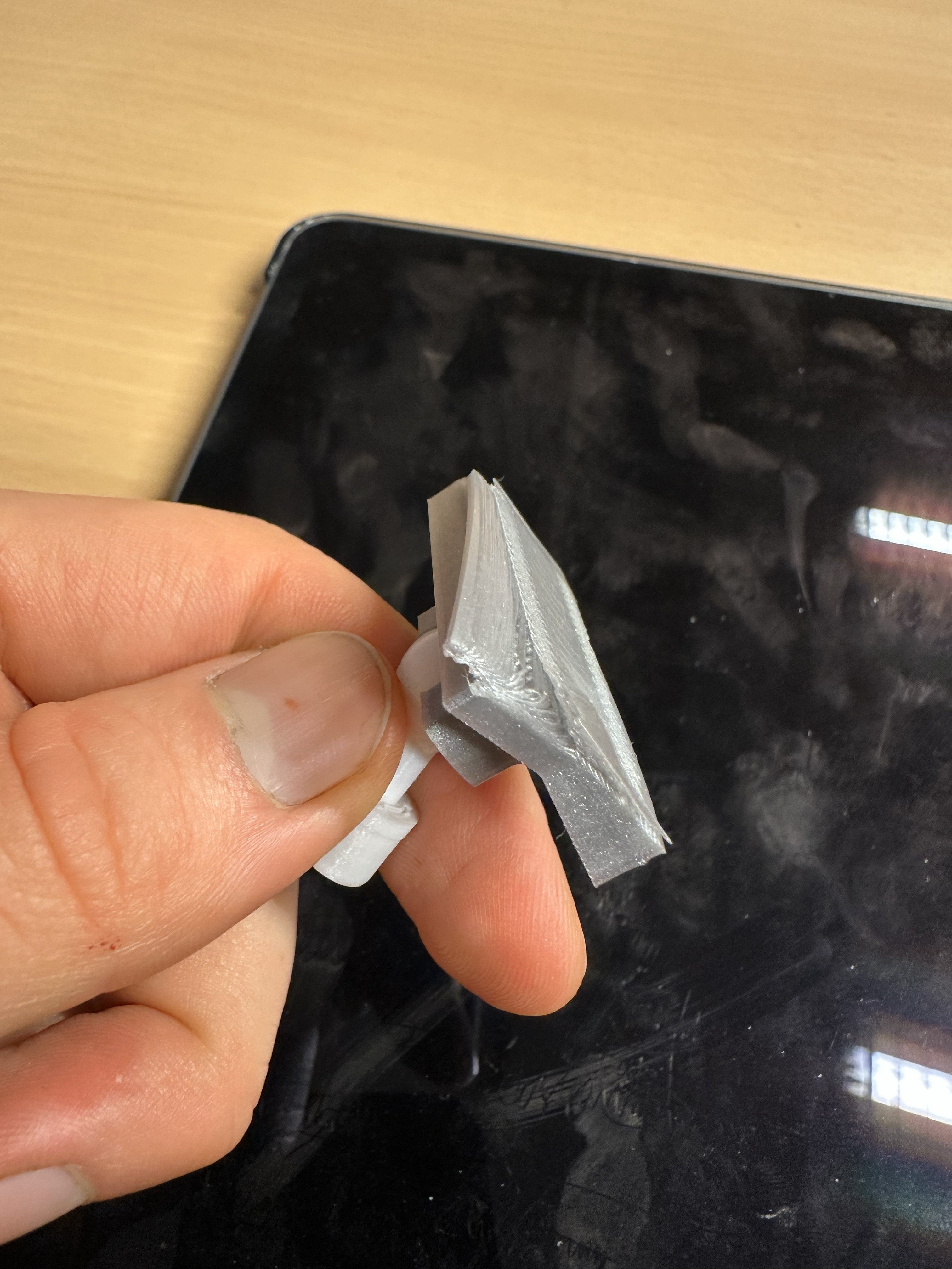 After some testing and printing i came to the conclusion that my design was pretty good. The range of motion was way better than the previous designs and it felt really smooth. I was able to attach wings to the clip part and test the movement. It worked really well and i was happy with the result. Altough it came to some complications during orinting which you will see next.