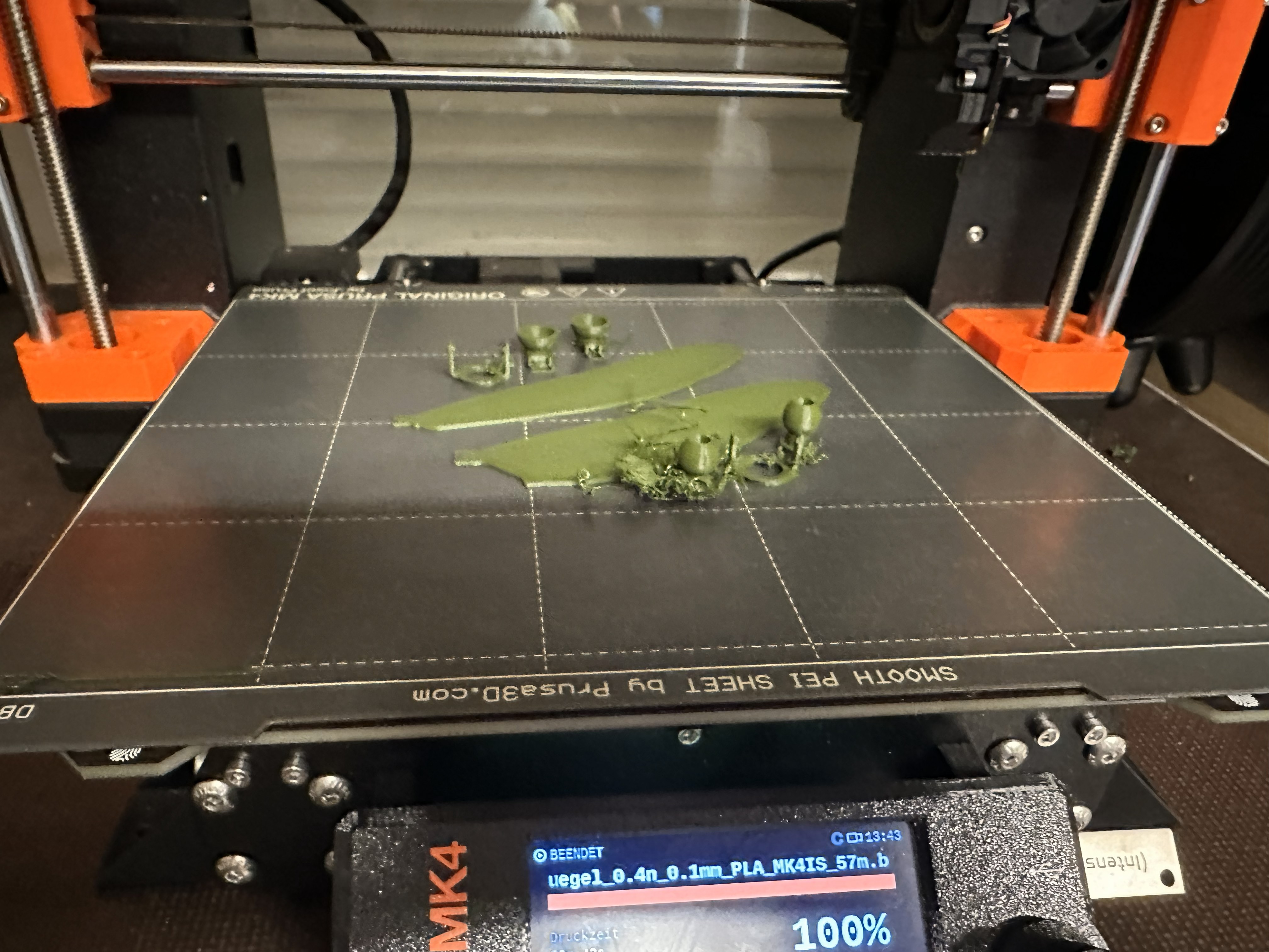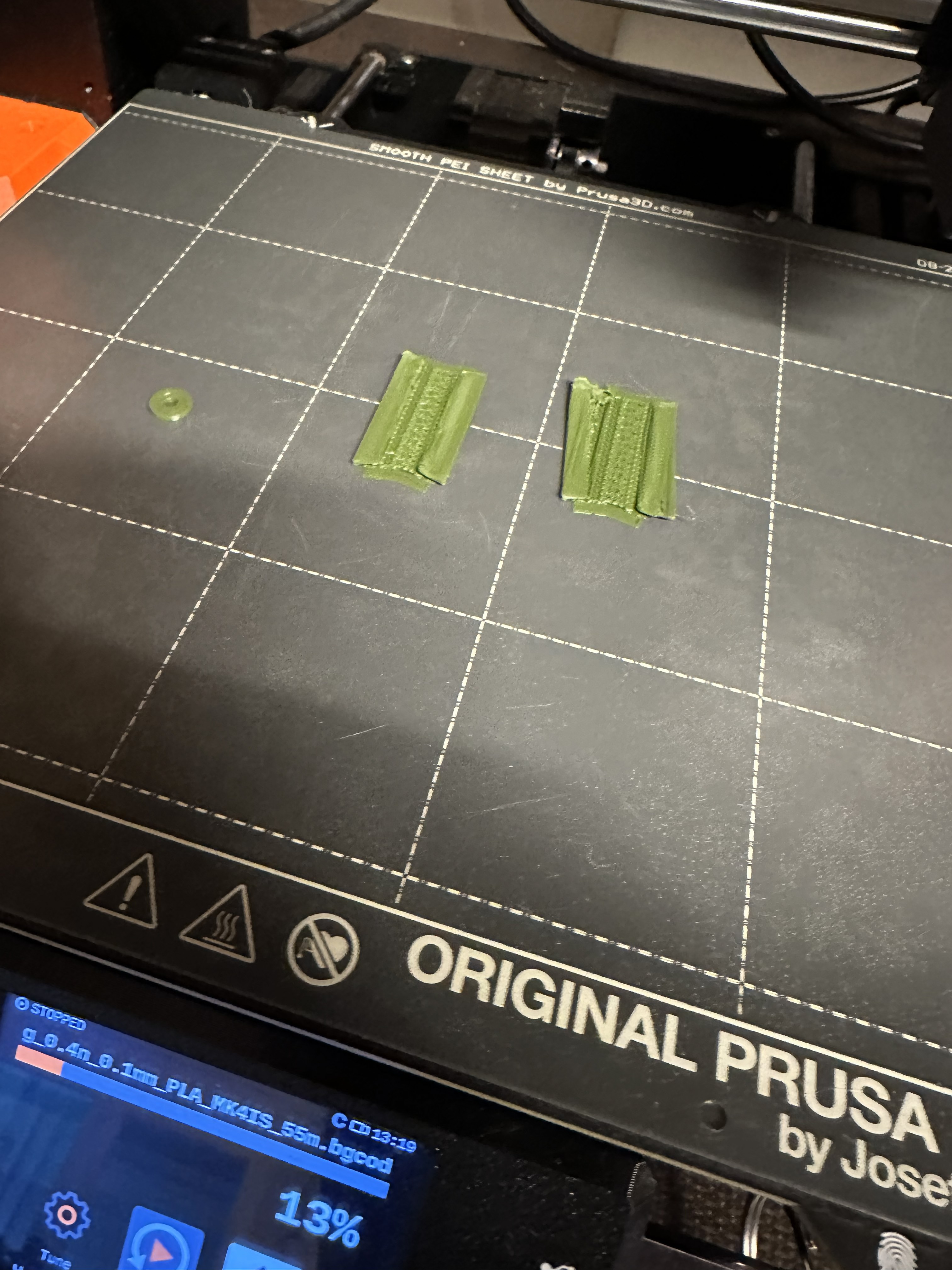As mentioned before I had some major issues with the printing of the parts. The accuracy was off, the surface was rough and some parts even failed completely. I tried many different approaches to fix this issue. First I changed the printer from the Prusa Mini to the MK4, which has a better accuracy and a more stable buildplate(Which is kind of irrelevant because the whole structre moves when a printer is working). Then I changed the filament from but they all said that they were the same quality, yet every fillament gave me a different result. Finally I changed many settings in the PrusaSlicer software, like slowing down the print speed, changing the retraction setting. One of the biggest improvemnets was to print the parts individual, that reduced one major flaw. The "drag" of the nozzle, which is related to movement of the printerhead, was basically eliminated. Espacially with structures that have a low surface tension with the printbase that concluded in the dragging of for example the ball to the base of the balljoint. Therefore the whole print got messy and there was a spider like "web-building".After all these changes I was finally able to print the parts with a reasonable quality. The surface was still not perfect but it was good enough for my purpose.