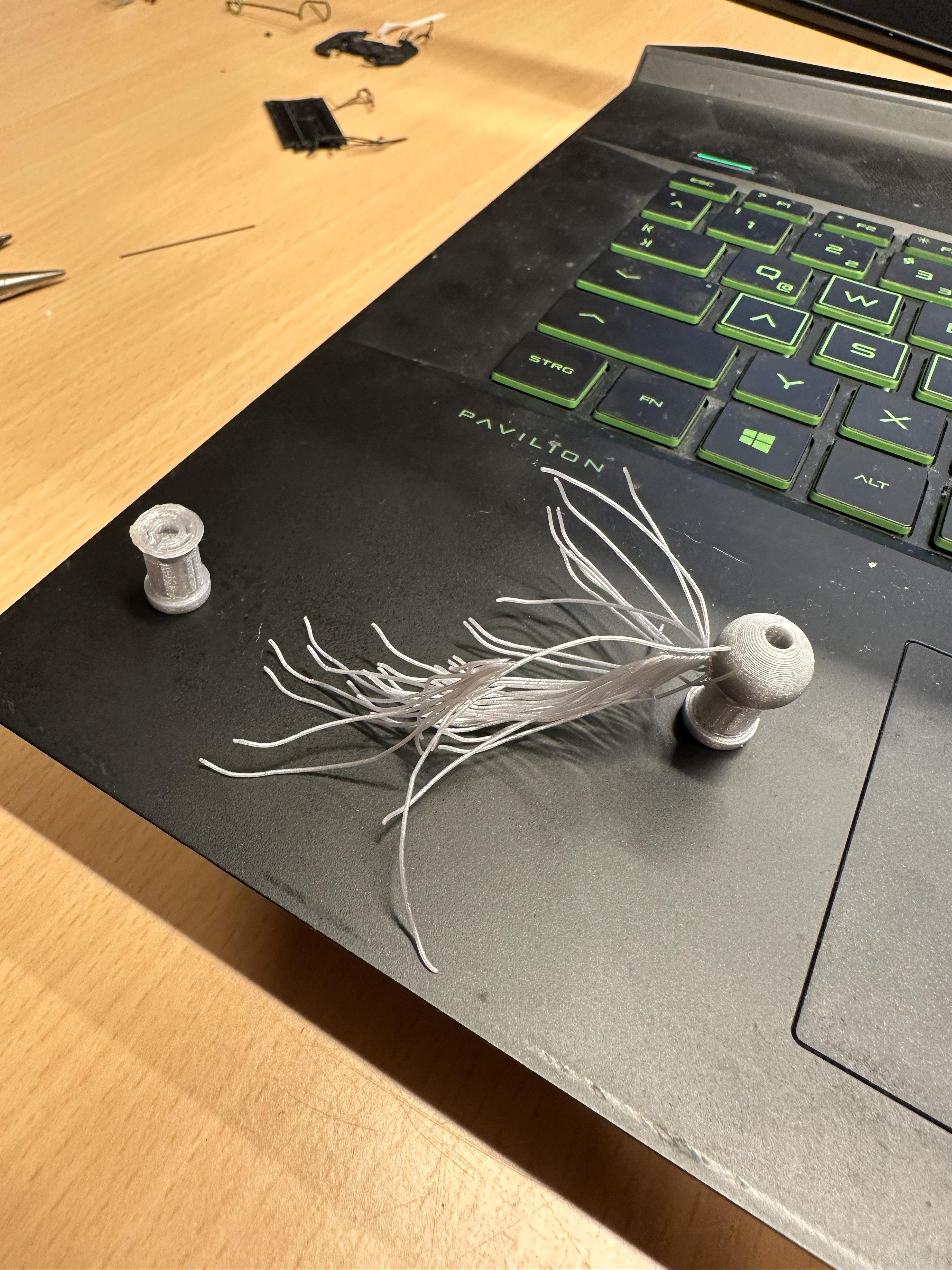 I think my problems can be traced back to the movement of the printer nozzle. I have some pretty small individual structures and if the printer moves long distances the surfacetension of the small parts can breake and tehy get dragged along the nozzle on top of ther other parts. I did not figure out how to compensate for that till my very last prints, which you will see later on.