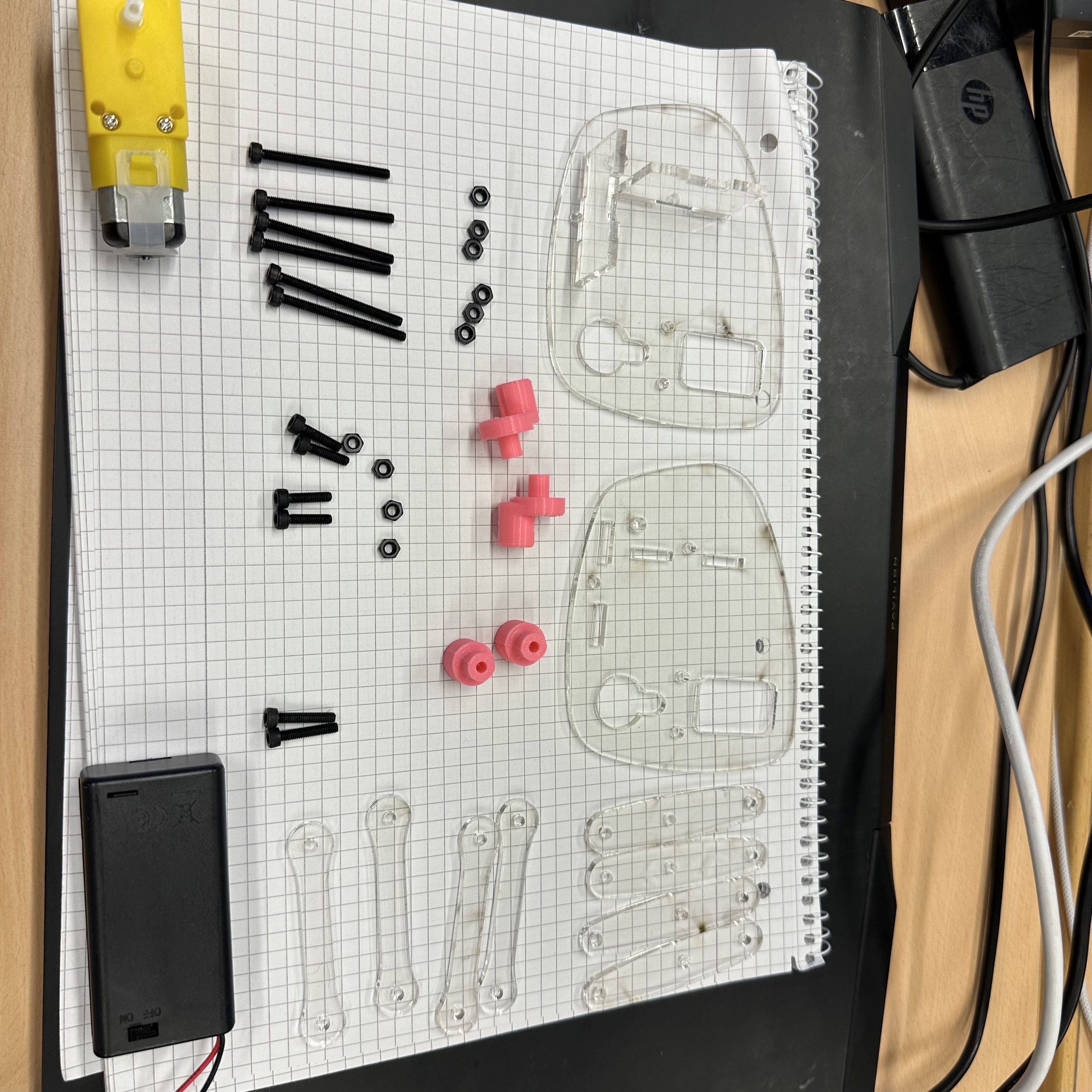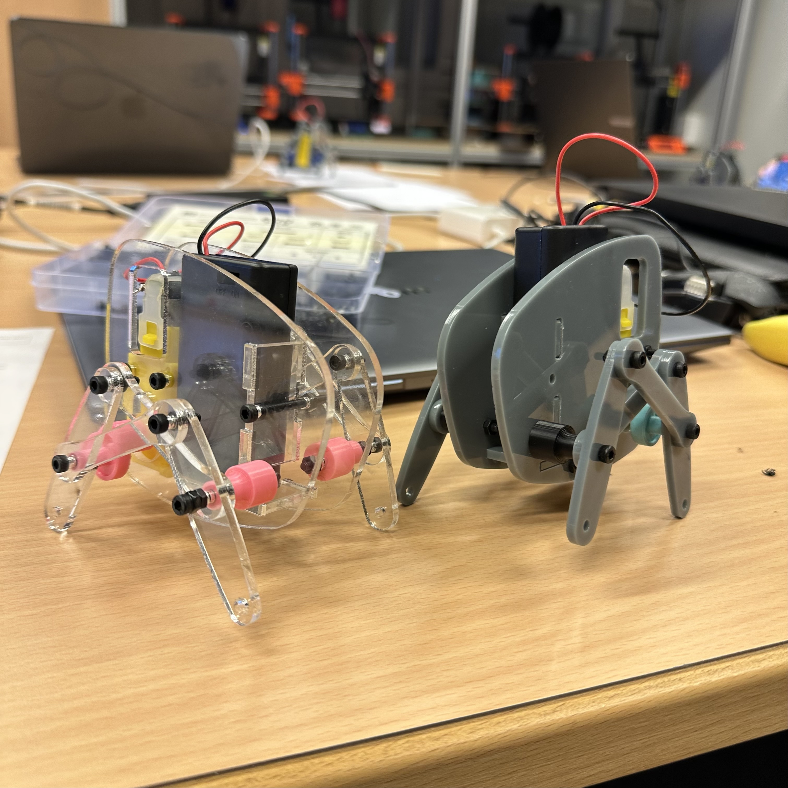 Today we built a small walking robot. The parts were lasercuttet and 3D printed. It was really interisting to see how to build a walking mechanism with only simole elements. Even tho